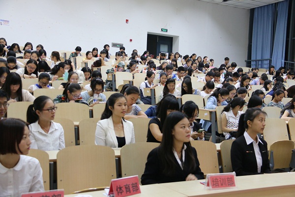 9月19日晚7时,南通388vip太阳集团团委学生会在9号教学楼201举行了招新宣讲会,可容纳数百人的教室座无虚席,2015级新同学对即将开始的宣讲会充满期待。