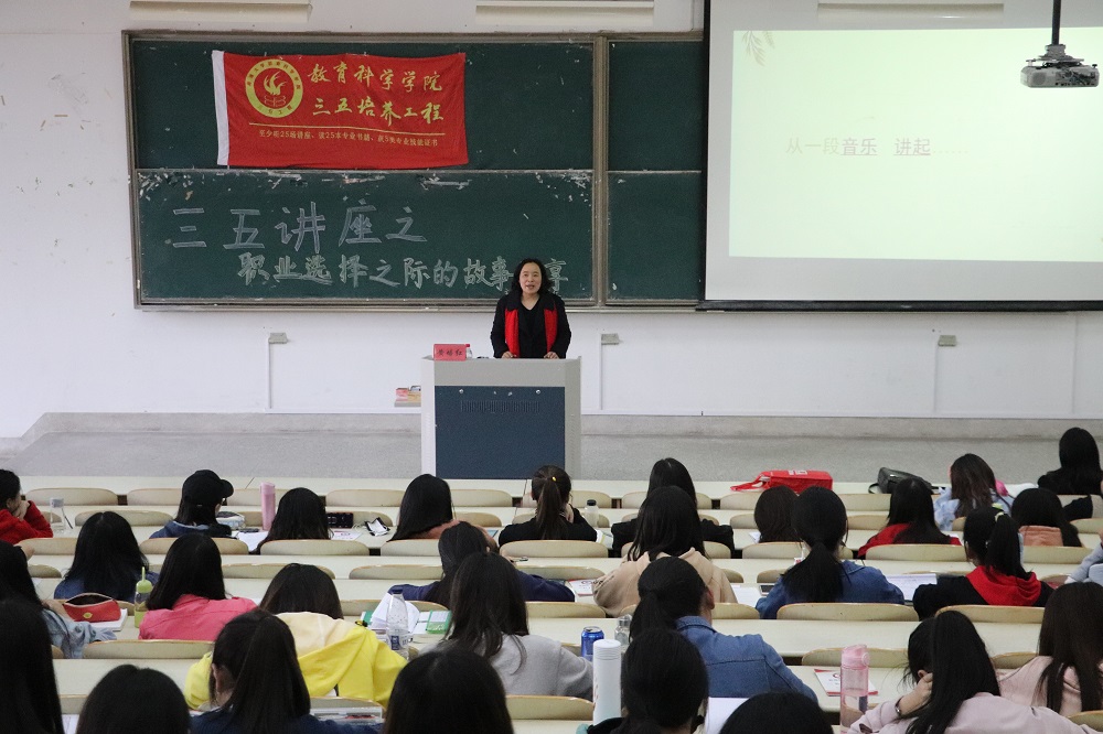 4月18日16:00,南通388vip太阳集团于9号教学楼202教室成功举办了以“职业选择之际的故事分享”为主题的三五讲座。本次讲座由黄培红老师主讲,教科院200余名学生到场参与此次讲座。