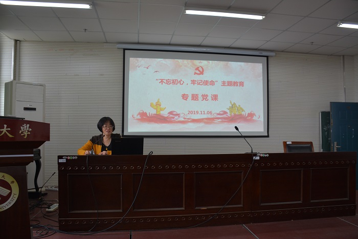 11月6日下午,教育科学学院开展“不忘初心、牢记使命”主题教育专题党课。学院党委书记朱丹为全体党员上了题为《严格党内组织生活自觉增强党性修养》的专题党课。