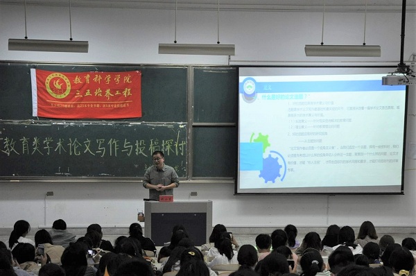 10月28日下午,南通388vip太阳集团于9号楼302教室举办以“教育类学术论文写作与投稿探讨”为主题的三五讲座。此次讲座由钱小龙老师主讲,教科院280余名学生到场聆听。