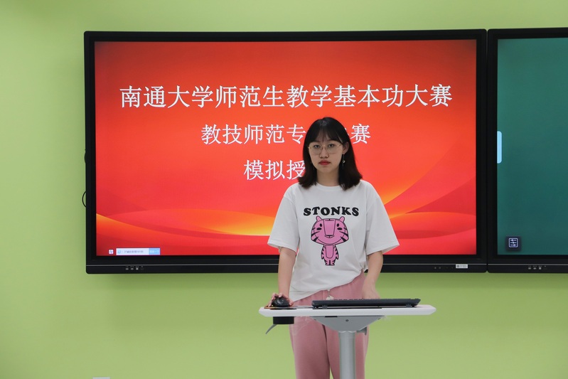 本次比赛以“展今日风采,成明日之师”为主题,由教育技术系全体教师担任比赛评委。比赛采用现场陈述的方式,通过口语表达和模拟授课两方面考察参赛学生对师范技能的实践把控力。选手们用充满自信、热情洋溢的教学语言,向评委们展示了自己独具特色的教学方法和集创新性、生活性、实用性于一体的课堂内容。