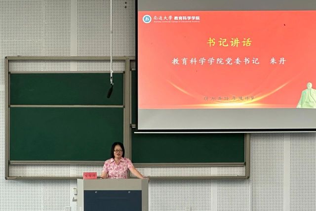 朱丹向新生们介绍了启东校区的地理人文背景,讲述了南通大学的师范渊源,鼓励同学们珍惜良好的学习环境和师资力量,勤恳好学。她提出了三点建议:一是要及时关注学院、班级发布的通知,听取老师们的合理建议;二是要与同学和睦相处,处理好人际关系;三是要珍惜大学时光,提升核心素养,掌握过硬本领。