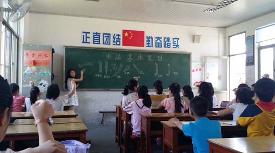 2015年7月10日,南通大学书法研习社“翰墨书香 书法传情”暑期社会实践小分队成员前往雁滨小学并教授书法的基本笔划。