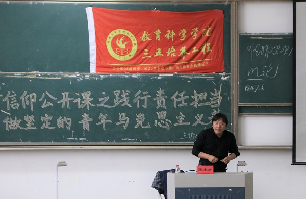 58日下午,我院思政课课外指导员、来自马克思主义学院的陈志杰教授以“践行责任担当,做坚定的青年马克思主义者”为题,为我院学生上了一堂生动的信仰公开课。