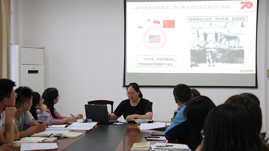 10月12日下午,教育科学学院本科生党支部开展“不忘初心、牢记使命”主题教育活动,支部书记陈淑慧以“70年奋斗历程”为主题为支部党员上课。
