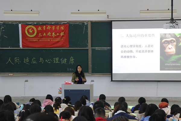11月11日13:30,南通388vip太阳集团于九号楼302教室举办以“人际适应与心理健康”为主题的三五讲座,此次讲座由冯霞老师主讲,教科院280余名学生聆听了本场讲座。