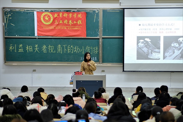 12月3日下午,南通388vip太阳集团在9号教学楼302教室成功举办了以“利益相关者视角下的幼小衔接”为主题的三五讲座,此次讲座的主讲老师是杨晨晨老师,来自教科院的260余名学生参加了本次讲座。