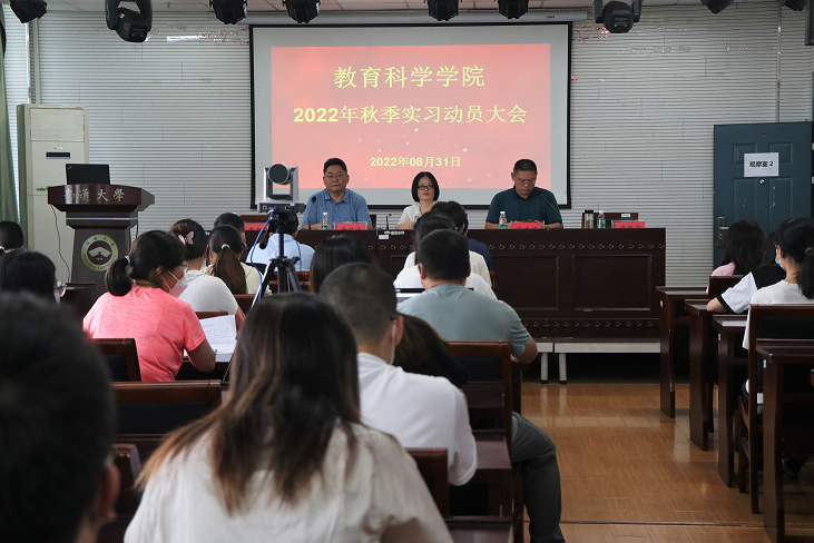 8月31日下午,教育科学学院召开2022年秋季实习动员大会。会议采取线上线下结合方式,学院党委书记朱丹、院长沈永江、各系室负责人、带队指导老师以及学生代表参加了本次会议。