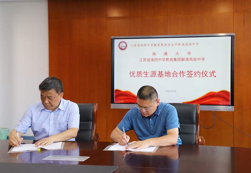 6月23日-24日,教育科学学院院长沈永江带队到淮安开展招生宣传,并分别与淮安中学校长于敏、淮阴中学教育集团淮安市新淮高级中学校长蒋鼎宏签署《南通大学优秀生源基地建设协议书》,向两校颁发“南通大学优质生源基地”牌匾。