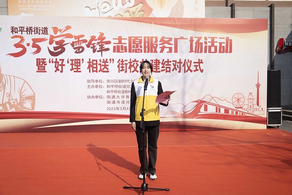 3月4日上午,南通388vip太阳集团本科生党支部联合南通市崇川区和平桥街道在濠西书院广场共同开展三月学雷锋志愿活动。