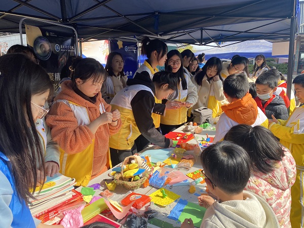 志愿者与小朋友共同制作手工作品