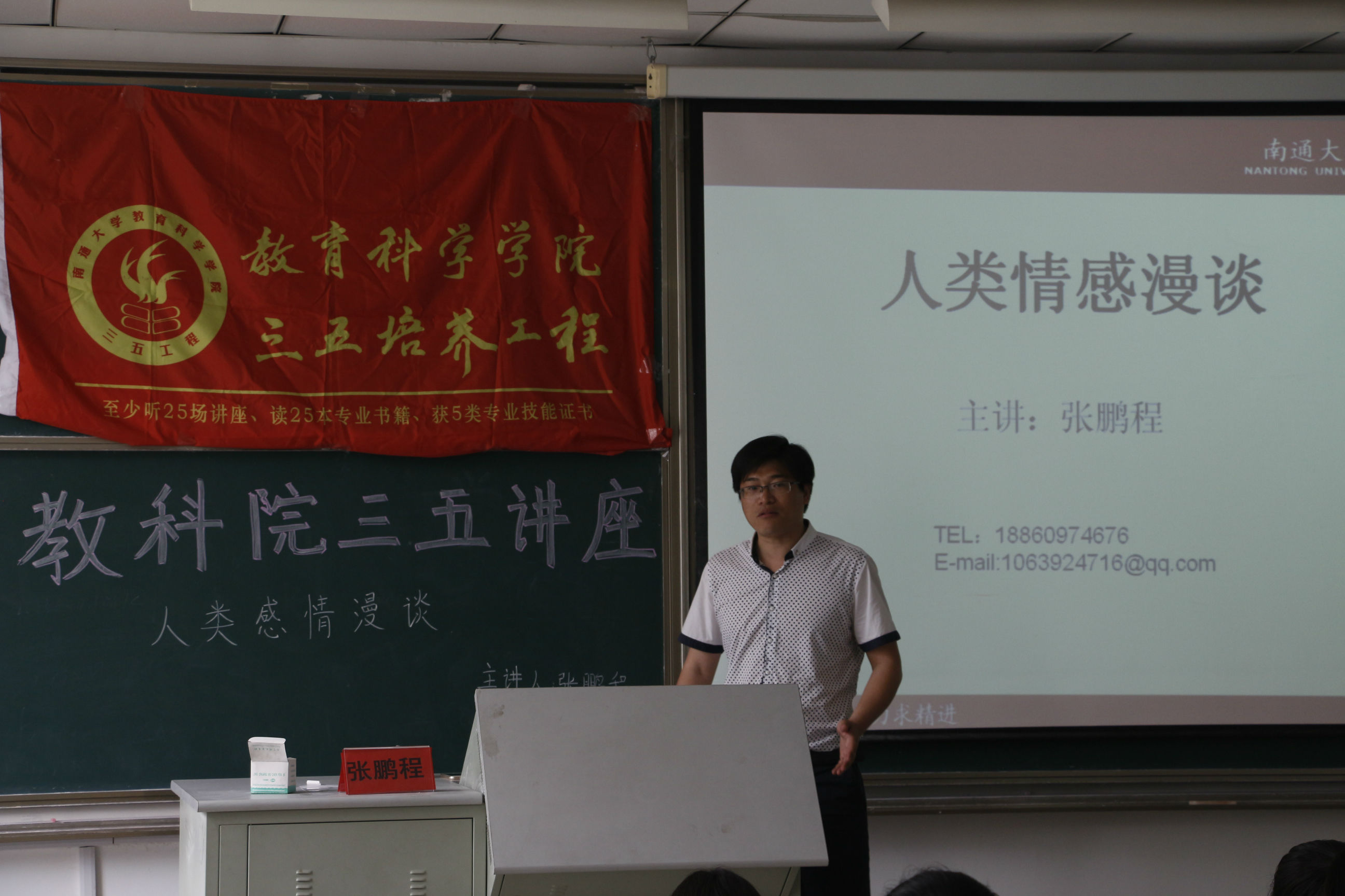 5月25日14时,教育科学学院在7号楼308成功举办三五讲座之人类情感漫谈,此次讲座邀请的主讲人是教育科学学院应用心理系讲师张鹏程博士。应用心理系70余名本科生参与了此次讲座。