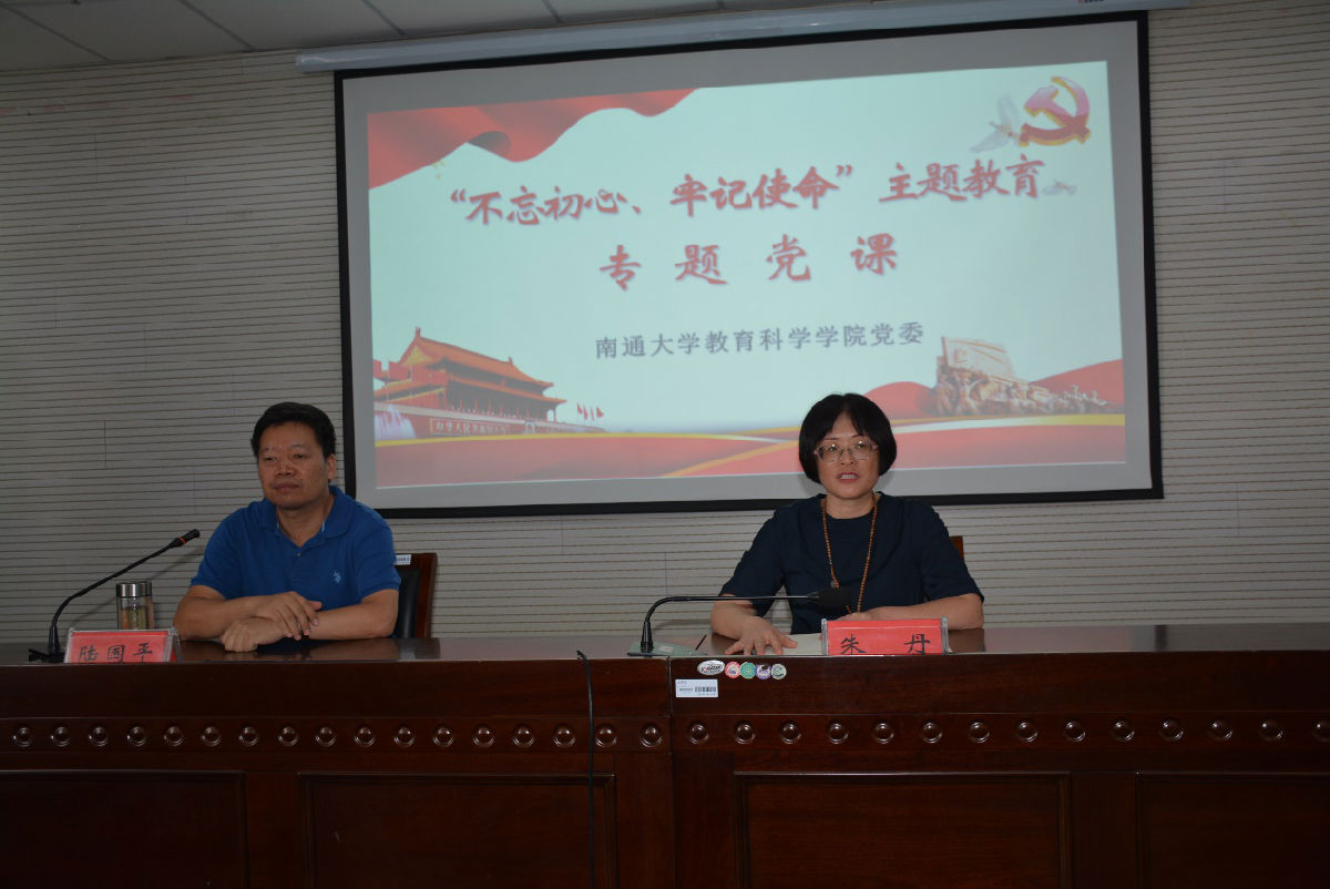 9月25日下午,教育科学学院召开全体党员大会,组织开展“不忘初心、牢记使命”主题教育专题党课。校纪委书记陆国平主讲本次专题党课,教育科学学院党委书记朱丹主持会议。