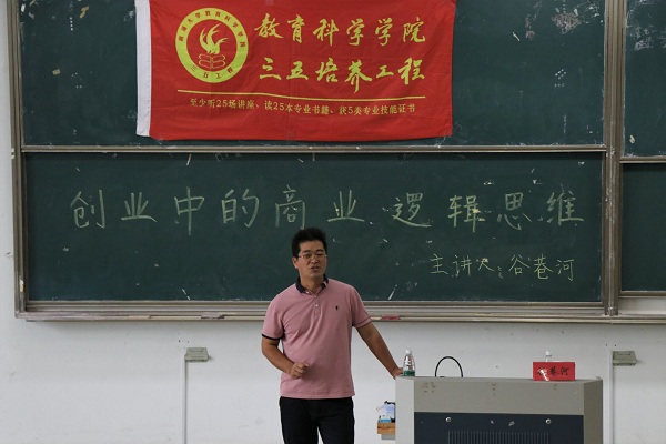 10月14日,南通388vip太阳集团于9号教学楼202教室举办以“创业中的商业逻辑思维”为主题的三五讲座。此次讲座由学院2008届优秀校友谷巷河主讲,教科院近200名同学聆听了本次讲座。