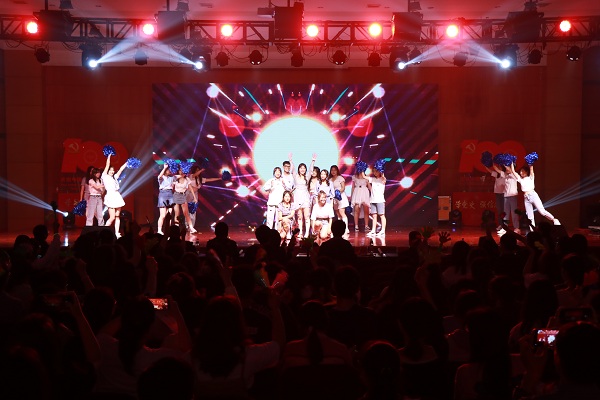 晚会在师生红歌合唱《祖国不会忘记》中拉开帷幕。由教育科学学院全体领导成员以及师生代表组成的合唱团用歌声向党的生日献上最真挚的祝福,用歌声赞扬了在祖国大地默默耕耘、无私奉献的人们。开场舞《一起跳舞吧》充分彰显了教科学子的蓬勃朝气。晚会分为三个篇章次第进行。第一篇章“青春拂晓,梦想起航”在红歌串烧中徐徐展开,百年征程书写光辉党史,筚路蓝缕绘就中华盛世。一首首经典红歌的背后是对老一辈同志峥嵘岁月的追忆,亦是对新时代少年风发意气的展望。现代舞《花枪》将国风元素融入新时代的鼓点,用舞姿演绎出巾帼不让须眉的气概。百年亦是风华正茂,诗朗诵《少年中国说》以饱满激昂的热情,铿锵有力的语调传递出少年复兴中华的坚定理想信念。