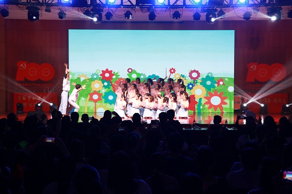 晚会在师生红歌合唱《祖国不会忘记》中拉开帷幕。由教育科学学院全体领导成员以及师生代表组成的合唱团用歌声向党的生日献上最真挚的祝福,用歌声赞扬了在祖国大地默默耕耘、无私奉献的人们。开场舞《一起跳舞吧》充分彰显了教科学子的蓬勃朝气。晚会分为三个篇章次第进行。第一篇章“青春拂晓,梦想起航”在红歌串烧中徐徐展开,百年征程书写光辉党史,筚路蓝缕绘就中华盛世。一首首经典红歌的背后是对老一辈同志峥嵘岁月的追忆,亦是对新时代少年风发意气的展望。现代舞《花枪》将国风元素融入新时代的鼓点,用舞姿演绎出巾帼不让须眉的气概。百年亦是风华正茂,诗朗诵《少年中国说》以饱满激昂的热情,铿锵有力的语调传递出少年复兴中华的坚定理想信念。