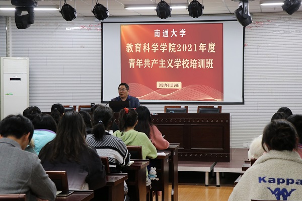 教育科学学院于11月26日开始举办2021年度青年共产主义学校培训班,培训班第一讲由院党委副书记兼副院长徐红波担任主讲,学院主要学生骨干参加了此次培训班。