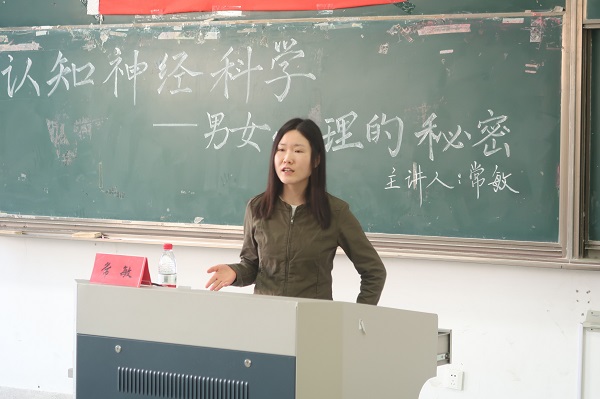 常敏介绍了大脑不同构造——胼胝体、扣带回、前额叶皮质、脑岛、海马回、杏仁核以及下视丘前区神经核对男女生产生的不同影响,通过举例向同学们具体解释了这些不同结构对男女生阅读能力、语言能力、空间知觉以及感觉方面的差异。她说科学研究表明,男女大脑不同的组织方式会使他们在处理不同的事情时有不同的效率,这让同学们明白了男女生在不同方面产生差异的原因。本次讲座使同学们对两性之间的差异及其原因有了更为深刻的认识,帮助广大同学更好的处理在生活学习中因为男女生差异所产生的问题与矛盾,从认知神经科学的角度增进对两性关系的理解和包容性。
