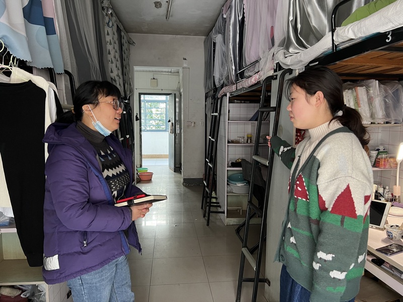 3月9日下午,教科院党委副书记、副院长徐红波深入学生宿舍,看望学生学习生活情况,辅导员罗其君一同参加。