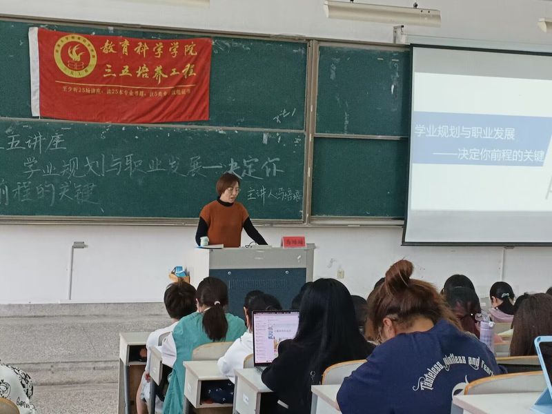 主讲人马培培从学生长远发展入手,通过分享自己的教育经历强调了教育基础在求职过程中的重要性,讲解从考研到读博、从学业到工作的注意事项。她表示在确定学业规划前应当明确自身目标,发展个人兴趣,谨慎规划职业发展道路,综合考量实际情况与市场需求,号召同学们不断积累实际工作经验,提高核心竞争力。