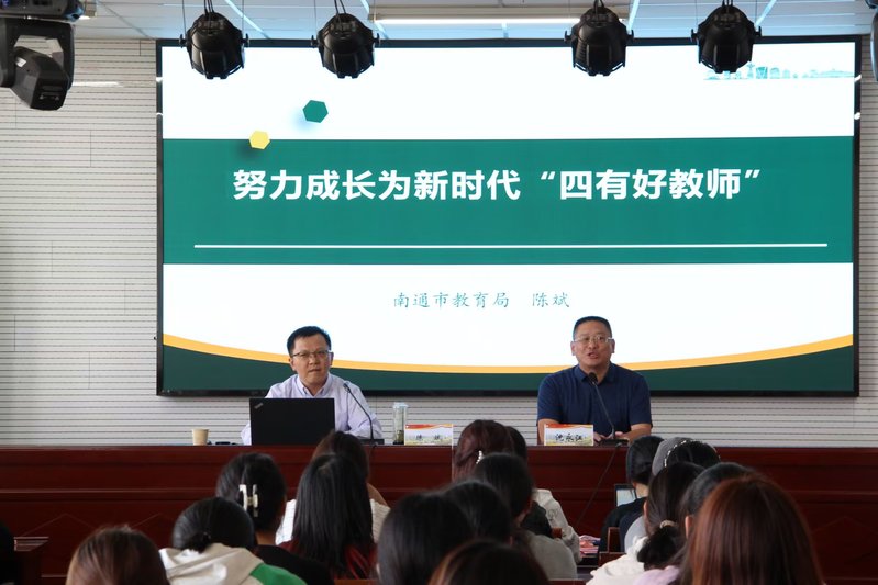 教师是教育高质量发展的第一资源,是科技自立自强的关键支撑,是人才队伍建设的重要保障,为认真贯彻落实习近平总书记关于教师队伍建设的重要指示批示精神,我院于10月18日下午在三十八号楼1112教室举办以“努力成为新时代‘四有好教师’”为主题的三五讲座。讲座由南通市教育局副局长陈斌主讲,我院80余名同学参加了讲座。