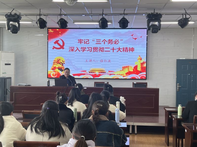 学院党委副书记、副院长徐红波以《深入学习贯彻二十大精神》为题作专题培训。他紧扣党的二十大,从大会主题、召开意义、主要内容等方面进行详细的讲解,希望同学们能认真贯彻落实二十大精神,牢记“三个务必”、“五个必由之路”、“六个坚持”,坚定理想信念,肩负时代使命,以实际行动为全面建设社会主义现代化国家、全面推进中华民族伟大复兴作出贡献,做时代合格的接班人。
