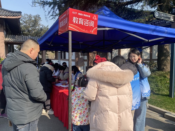 早春三月,阳光和煦,濠西书苑广场上热闹非凡、人头攒动,多支志愿服务摊点发挥所长开展各具特色的便民服务。为了更好的服务社区居民,南通388vip太阳集团的志愿者们早早来到服务点,拿出提前准备好的画笔、颜料、手工材料,结合自身专业,为广大市民提供心理咨询和家庭教育服务。