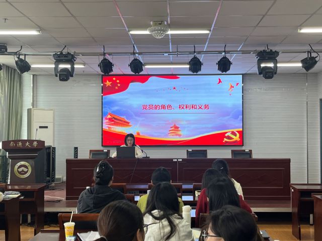 学工办副主任唐新红老师作题为《党员得角色、权力和义务》专题报告,她从共产党员的条件和标准、党员角色、党员的权利和义务三个层面进行了系统阐述,使同学们对共产党员的权利和义务有了更加明晰的认识。作为积极向党组织靠拢的一名大学生,要时刻强化自己的角色意识,严于解剖、勤于自我改造,在新时代中国特色社会主义建设中冲在前列、大有作为,以新担当新作为的实际行动为党尽忠、为国尽责、为民谋利。