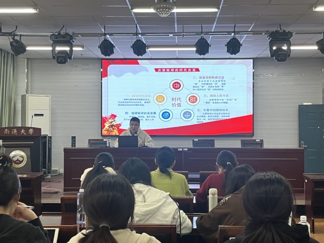辅导员金翔老师以《沂蒙精神为主题进行宣讲金翔从沂蒙精神的演变路径切入,深刻阐释了“党群同心、军民情深,水乳交融、生死与共”的精神内涵;详细讲述了渊子崖村自卫战、沂蒙红嫂、沂蒙六姐妹等一系列光荣革命事迹;重点解析了沂蒙精神的时代价值,它是推动社会经济发展,激励人民拥党、爱党、护党的重要力量。学生们表示,通过此次学习,他们对沂蒙精神有了更为透彻的理解,深切体会到了革命先烈身上所蕴含的崇高精神。这不仅激发他们的爱国热情,更坚定了他们传承红色基因、弘扬沂蒙精神的决心。他们誓言将这份精神力量内化于心、外化于行,为实现中华民族的伟大复兴贡献自己的力量。
